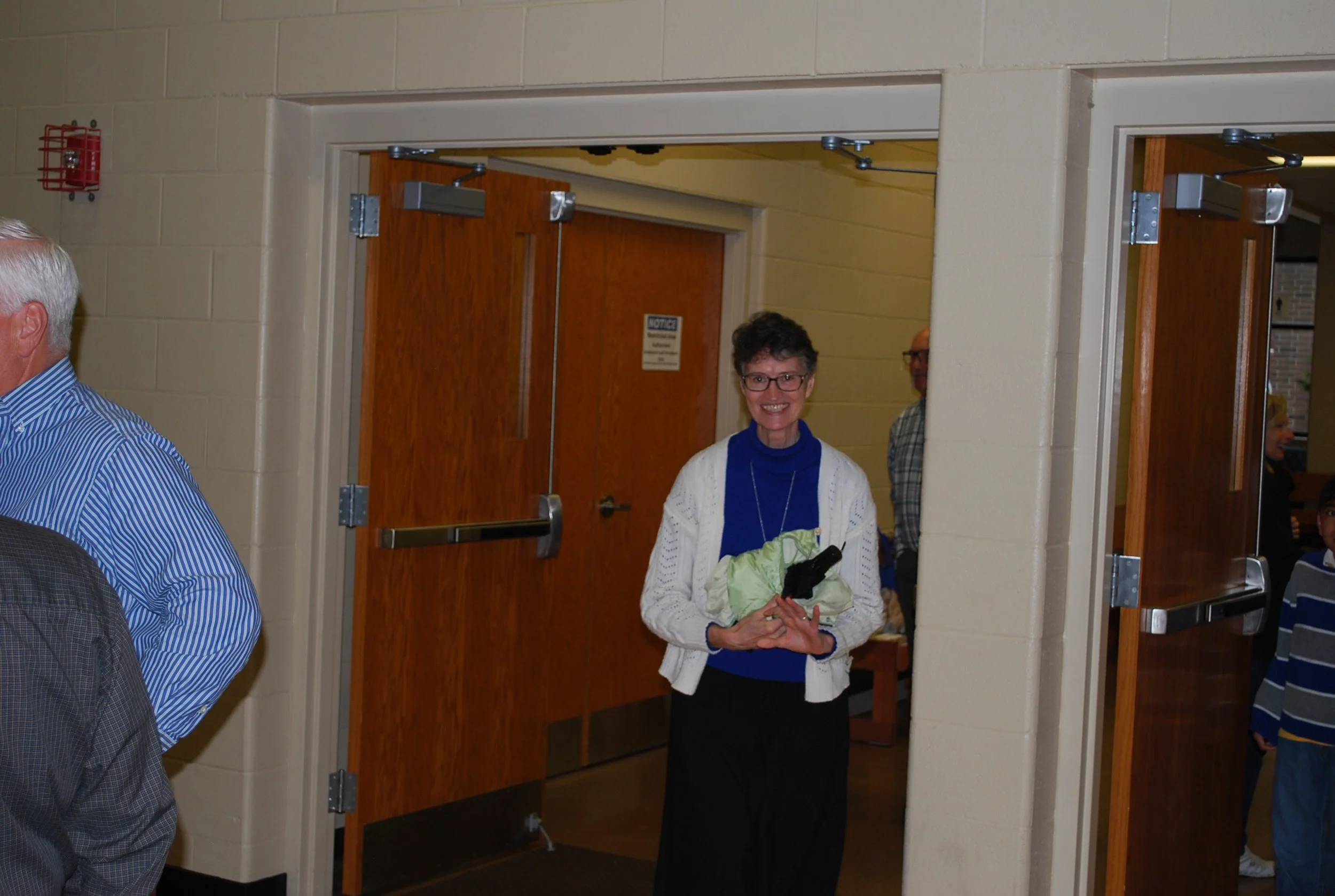 Here Sister Kathleen is opening the doors of our school for our guests to enter